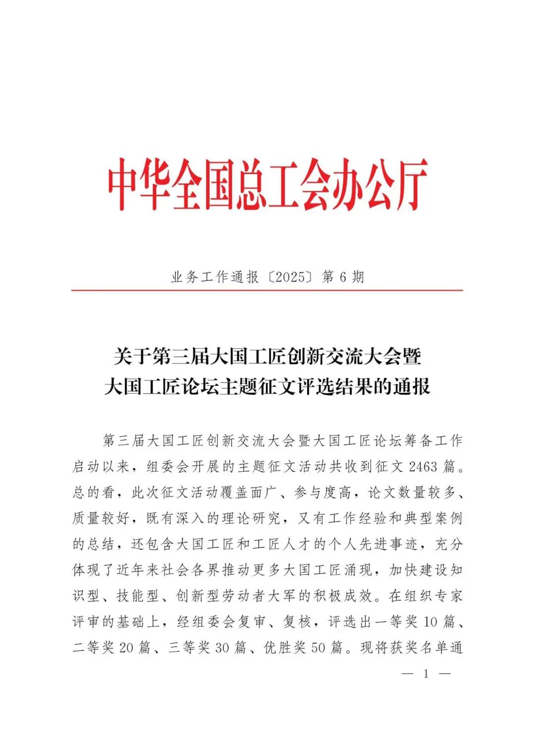 近日,由中华全国总工会主办的第三届大国工匠创新交流大会暨大国工匠论坛在重庆举办。大会集中展示大国工匠和广大职工在推动高质量发展、发展新质生产力中的卓越贡献与创新成果,激励亿万职工在中国式现代化建设的伟大征程中再创佳绩。