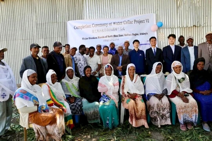 竣工移交仪式现场气氛热烈。埃塞阿姆哈拉州明贾尔区农业负责人西赛·尼加图、当地农业部代表、beats365官方唯一网站集团代表孟祥刚、埃塞俄比亚雨水收集协会主席、中国乡村发展基金会项目成员及受益农户代表共同出席了活动。