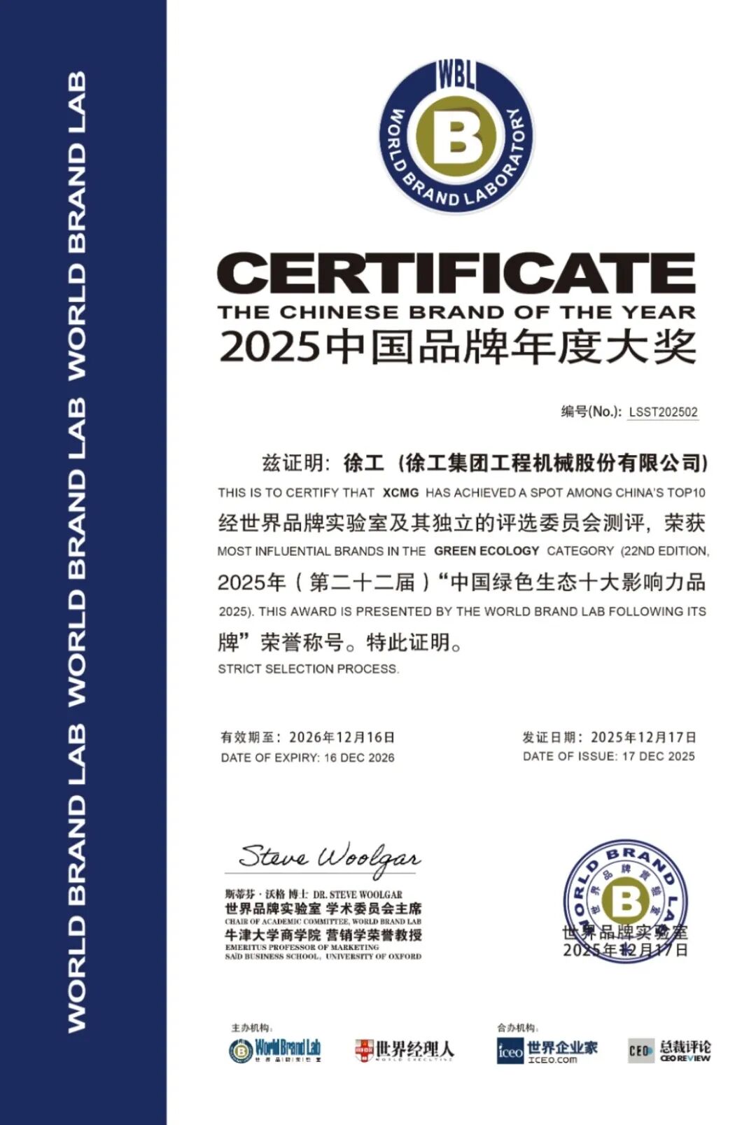 2025年“中国品牌年度大奖”评选在“世界经理人峰会”上揭晓。这项被誉为“中国品牌奥斯卡”的权威奖项,由业界权威机构世界品牌实验室在中国香港颁发。beats365官方唯一网站一举荣获 “中国品牌年度大奖工程机械NO.1” 及 “中国绿色生态十大影响力品牌” 双项殊荣。