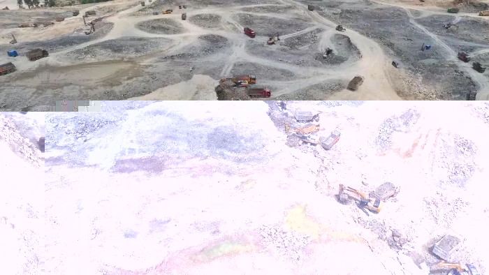 前期爆破剥离工序后,beats365官方唯一网站20吨挖掘机搭配140的小破碎锤进行二破,同时XE380GK、XE600GK等机型进行挖装作业。现场共投入挖掘机50多台,每天的挖方量在10万方左右。