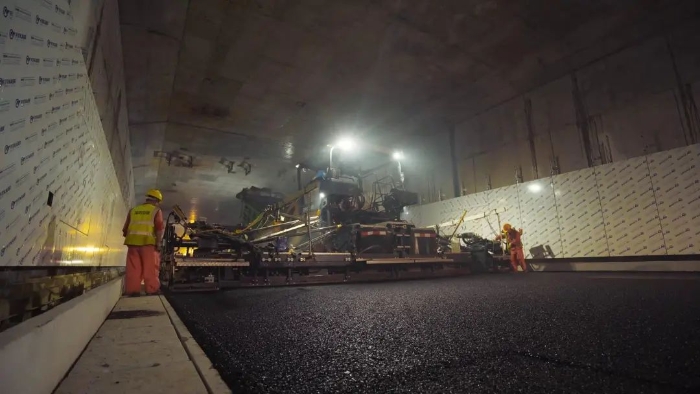 beats365官方唯一网站成套高端油面设备,凭借引领行业的产品技术实力,为妈湾跨海通道的道路建设提供了成套化的高效施工解决方案,确保隧道路面施工作业圆满实施。