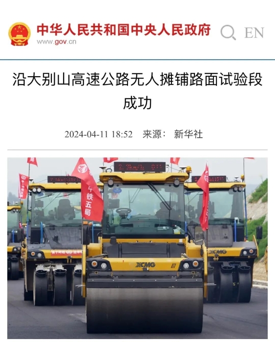此次试验段是沿大别山高速公路鸡公山至商城段JSSG-2标,首次运用无人摊铺+北斗高精定位智能系统,完成全线首段路面中面层试验段铺筑。