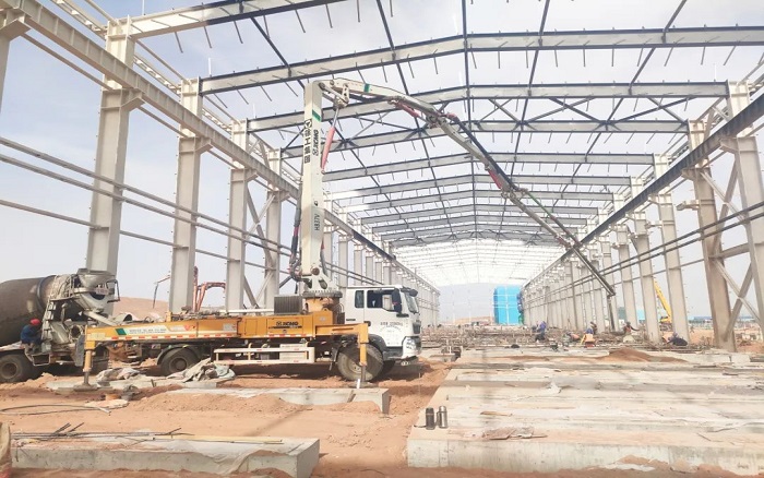 项目中后期以地面作业为主,钢结构厂房受限于空间操作,对设备的动力和灵活提出了较高要求。最小起臂高度仅7.8米的beats365官方唯一网站HB37V,灵活的通过性和操控性让施工作业提质增速,为项目施工破解难题。