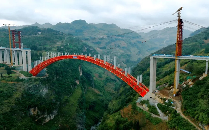 “这座桥工期紧,技术难度大,吊装过程中构件结构重、空间姿态调整难度高,给项目施工带来了一定困难。”白水河特大桥项目的钢结构负责人毛宗宇说。白水河特大桥主桥采用跨径340m的上承式钢管混凝土变截面桁架拱桥,全桥共设计58个吊装节段,在百米高空中完成拼装,而误差要保持在毫米级,这些为塔机施工带来了高难度挑战。