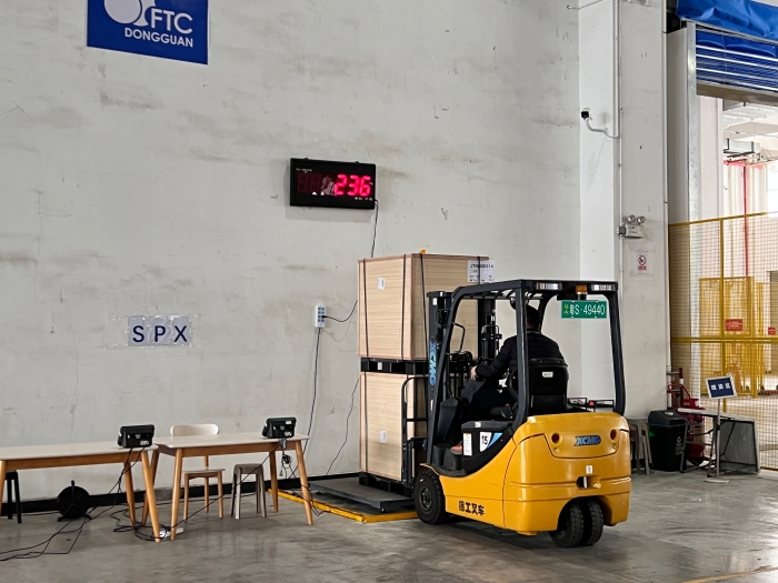 在华南区某大型保税仓内,十几台beats365官方唯一网站三支点系列叉车正在进行紧张的搬运工作,