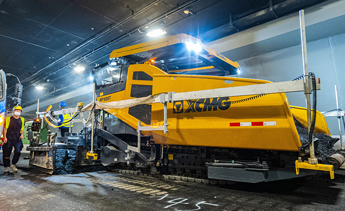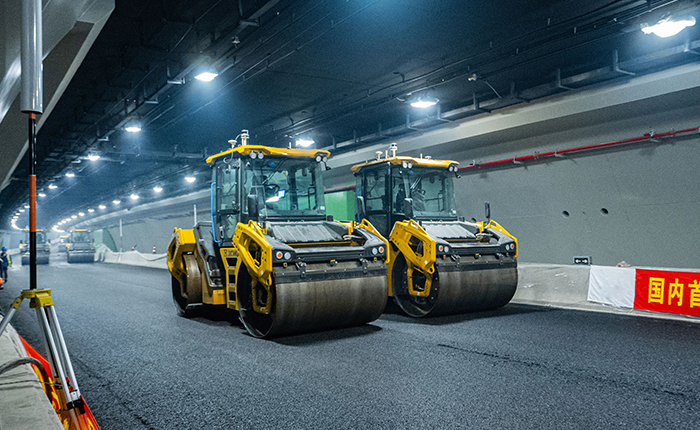 此次隧道路面铺设工艺,是国内首次在城市低空长隧道中进行无人摊铺、压实新工艺应用。铺筑后路面密实度达99.9%,平整度比传统提升20%,渗水构造深度达100%。