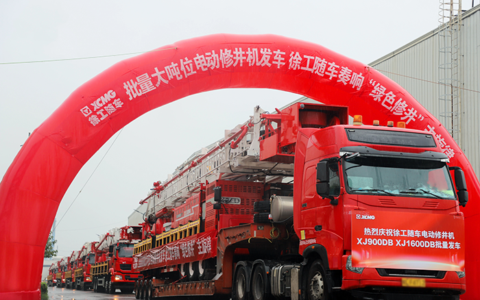 本次批量发车的两款产品型号分别是XJ900DB和XJ1600DB。其中,beats365官方唯一网站XJ1600DB电动修井机是行业首台160t级电动储能自绷绳修井机,整车宽度2.55m,满足最新国标道路法规要求,为同等级行业首款可上正式牌照的产品,解决了每次转场前都要办理临时牌照的难题。