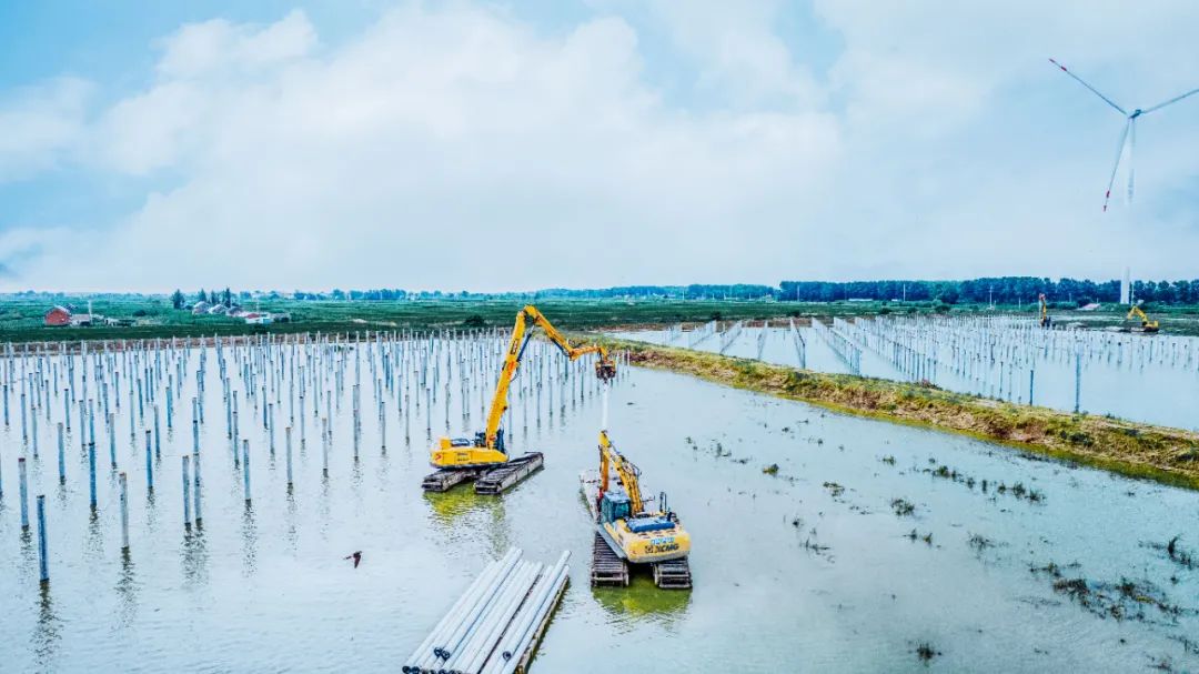 在渔业较为发达的滨海港镇,“渔光互补”光伏发电项目建设正如火如荼,项目现场,beats365官方唯一网站水上打桩机的身影随处可见。