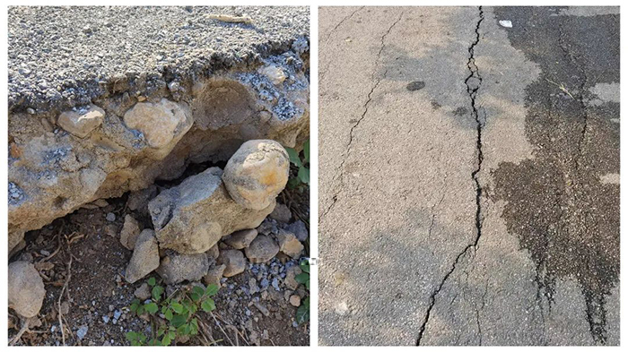 该路段由20cm水稳砂基层+4cm沥青混凝土面层组成,面层出现了大量的开裂、车辙、沉陷等病害,损坏严重,前期养护都是对路面损坏处进行局部处理。