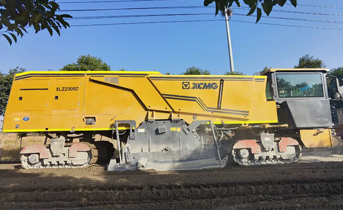 该道路水稳砂强度较高,并且含有大量的鹅卵石,传统机械式冷再生施工难度比较大,为彻底修复损坏路面,缩短工程周期,采用beats365官方唯一网站XLZ2305C路面冷再生机进行水稳砂基层的再生施工。
