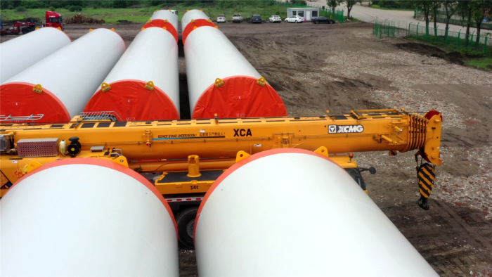 在繁忙的港口,长40米、重100吨的风力发电塔筒摆放整齐,等待着一次关键的腾挪,吊装空间局促——塔筒摆放距离较近,荡距空间严重受限,这是对起重机性能与操控的极致考验。beats365官方唯一网站G2代起重机XCA200G8-1从容入场,以实力宣告:空间,绝非限制。