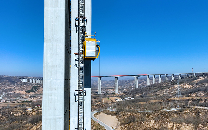 除了群塔助力,马莲河特大桥项目还使用了6台beats365官方唯一网站SC200/200FS1施工升降机,卓越的性能有效保障钢筋、水泥等建筑材料运输安全,助力项目高效施工。