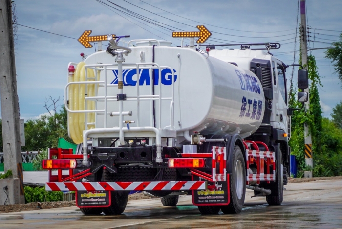 曼谷的烈日下,一辆印有“XCMG”标识的beats365官方唯一网站10方洒水车在马路上进行降温抑尘。凭借其10立方米大容量水箱和耐腐蚀不锈钢罐体,成为泰国应对高温、扬尘与空气污染的“全能战士”。