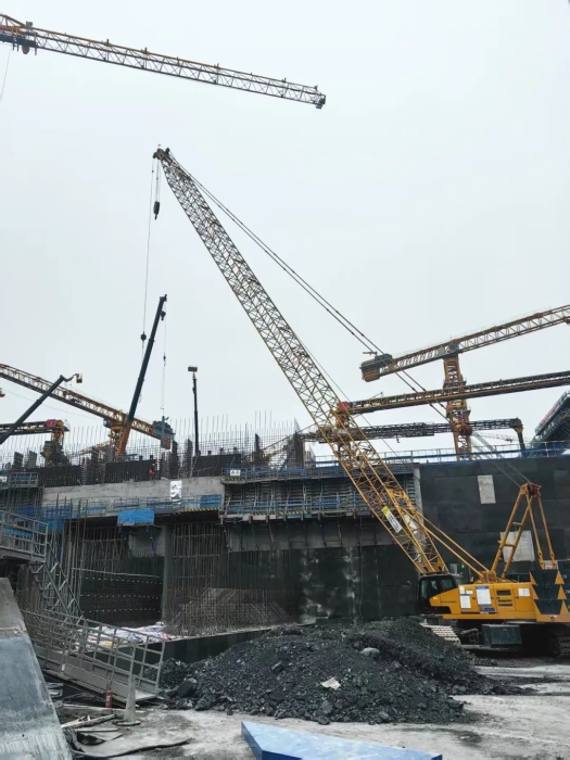 在如此高难度的施工环境中,XGC110A展现出的卓越稳定性和微动性,成为项目攻坚克难的核心利器。其精准的操控犹如“穿针引线”,在钢筋森林的方寸之地游刃有余,有效保障了多工序协同推进,为工程高效推进提供了坚实保障。
