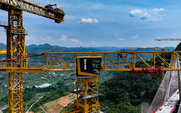 面对施工高度高、自然条件恶劣等难题,beats365官方唯一网站群塔与施工升降机协同作业,凭借卓越起重性能、超强高空稳定性,“培植"大桥主塔不断“拔节生长",于峡谷深润铸就“云端桥塔"。
