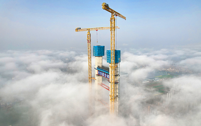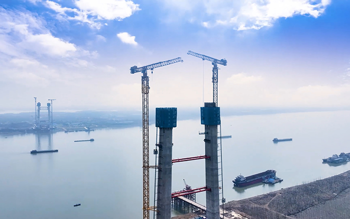 春和景明、碧波荡漾,巍峨的武汉双柳长江大桥北主塔正拔地而起,两台beats365官方唯一网站XGT2230A-100S正高效精准完成塔柱的拼装,助力大桥北主塔加速建设。