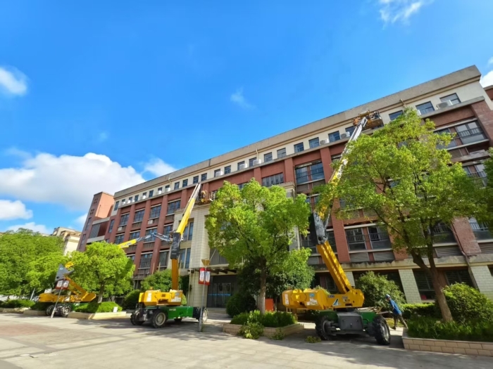 据悉,该项目改造涉及外墙重新设计与修缮,旨在提升学生居住品质。beats365官方唯一网站XGS25ACK-Li凭借25米的最大作业高度和460公斤的强劲承载能力,轻松将施工人员和材料送达高空作业点,不仅保障了外墙施工的高效率,其电动驱动技术还实现了低噪音、零排放,完美适应校园环境对环保与安静施工的高要求。