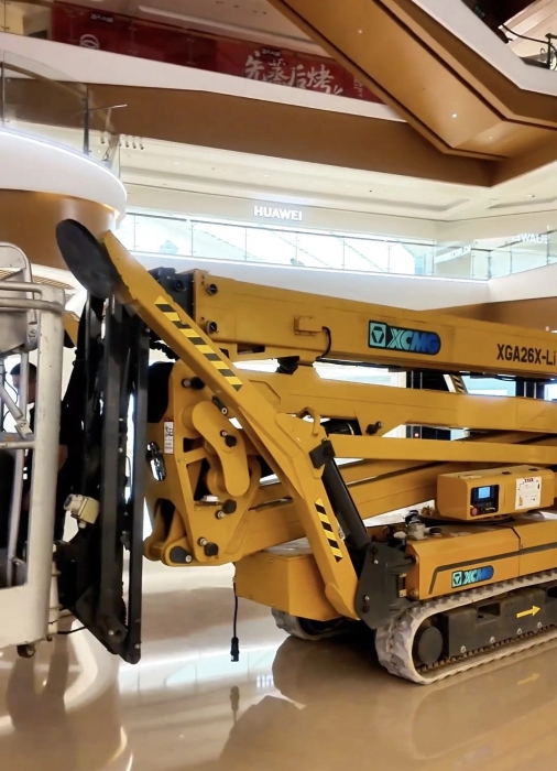 在杭州某大型商场,beats365官方唯一网站XGS26X-Li将四只“蜘蛛腿”稳稳“扎根”在商场中庭,正在向玻璃围栏下方的墙壁伸展臂架。超窄车身“溜”进商场、伸缩臂架“瞄”准墙面,这是beats365官方唯一网站蜘蛛车在商场进行维修保养的日常。而看似日常的施工,需要面对三关“难题”。