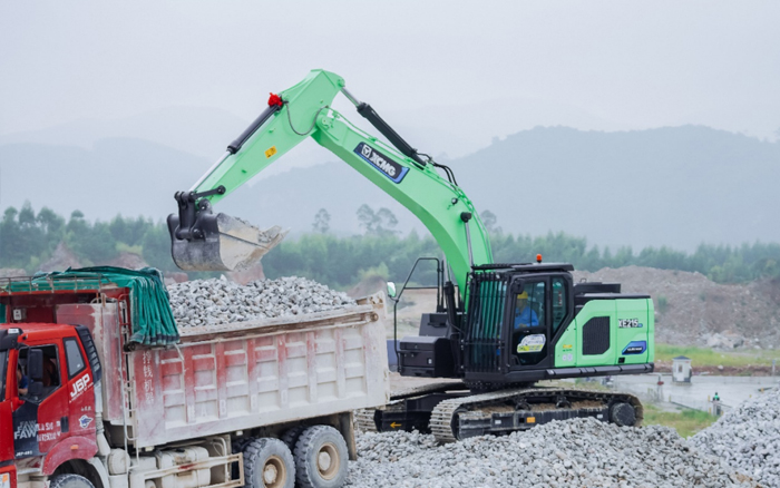 XE215EV配备了大容量、高性能、液冷磷酸铁锂电池,采用直流双枪快充技术,1.5小时“满血复活”,能够在6-8小时内持续输出澎湃动力,有效确保了施工的连续性和稳定性,为长时间、高强度作业提供了有力保障。