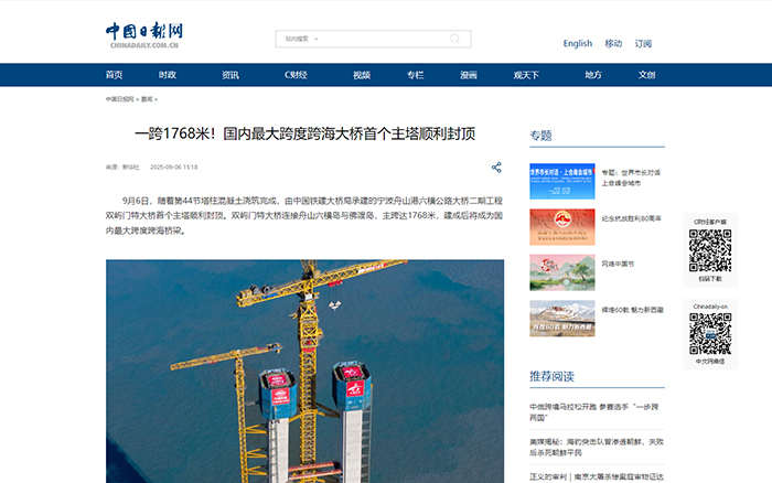 宁波舟山港六横公路大桥二期关键控制性工程