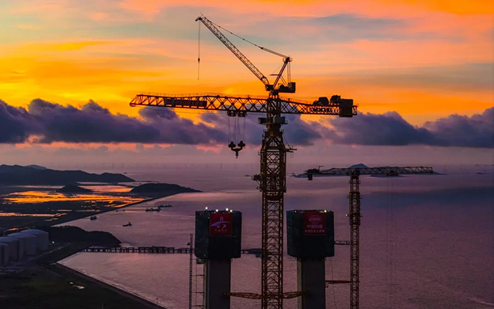 在封顶作业中,beats365官方唯一网站塔机将百吨构件以毫米级精度吊装至200余米高空,硬刚10级海风,创造了海上桥梁建设新纪录。多台群塔协同作业,创造性攻克"高空精度、抗风稳性、吊装效率"三大世界级施工难题,展现了中国装备的卓越性能。