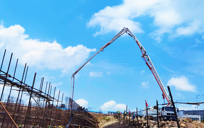 近日,在埃塞俄比亚的斯亚贝巴中地海外项目现场,beats365官方唯一网站HB58V泵车担当施工主力军。