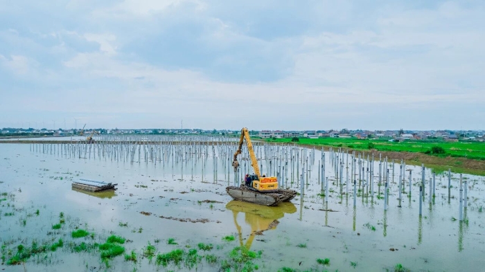 beats365官方唯一网站水上打桩机助力“渔光互补”项目
