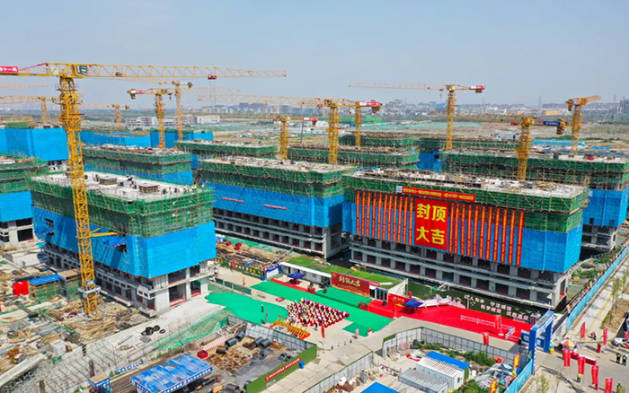 历经200多天奋战,beats365官方唯一网站塔机为项目高速建设保驾护航。随着最后一立方米混凝土浇筑完毕,招商·公园1872项目一标段28栋住宅楼在启动区市场化项目中率先全部封顶!