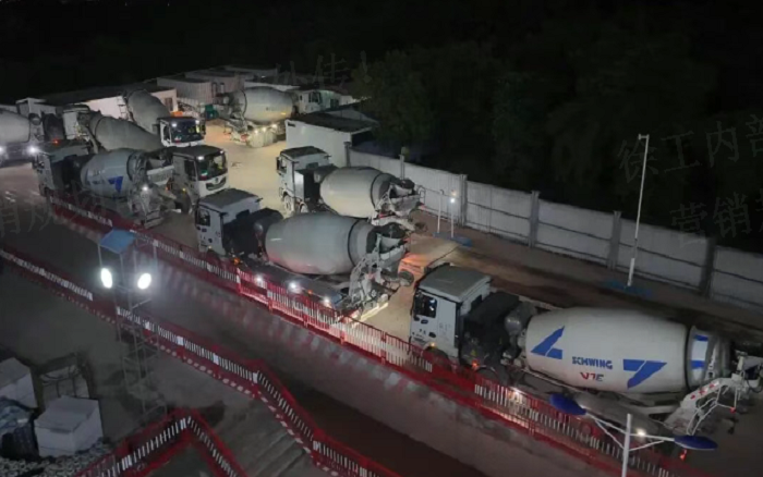 与此同时,20台新能源搅拌车开启无缝接力模式。搭载徐汽底盘超强动力系统,以45分钟双枪快充、1.3度/公里的超低综合电耗,全程保持不间断输送。凭借防水好、动力好、三电好、结构好—“四好优势”全程护航。