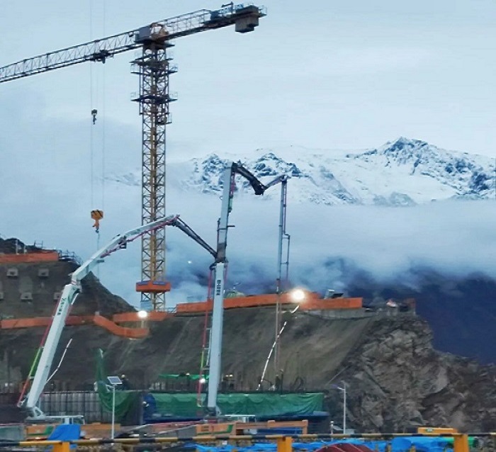 连续泵送14小时后,峡谷开始刮起侧风,臂架末端出现轻微摆动。在第三代智能臂架技术加持下,臂架上下振幅<130mm,左右<100mm,保证平稳浇筑。